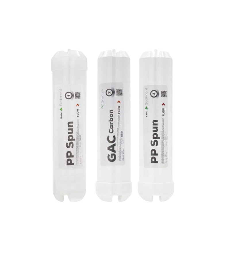 1. Aşama: 5 Mikron Sediment Filtre – Kaba tortu filtresi olup suda bulunan kaba tortu ve partikülleri filtre ederek membran filtreyi korur ve optimum ömür sağlar.